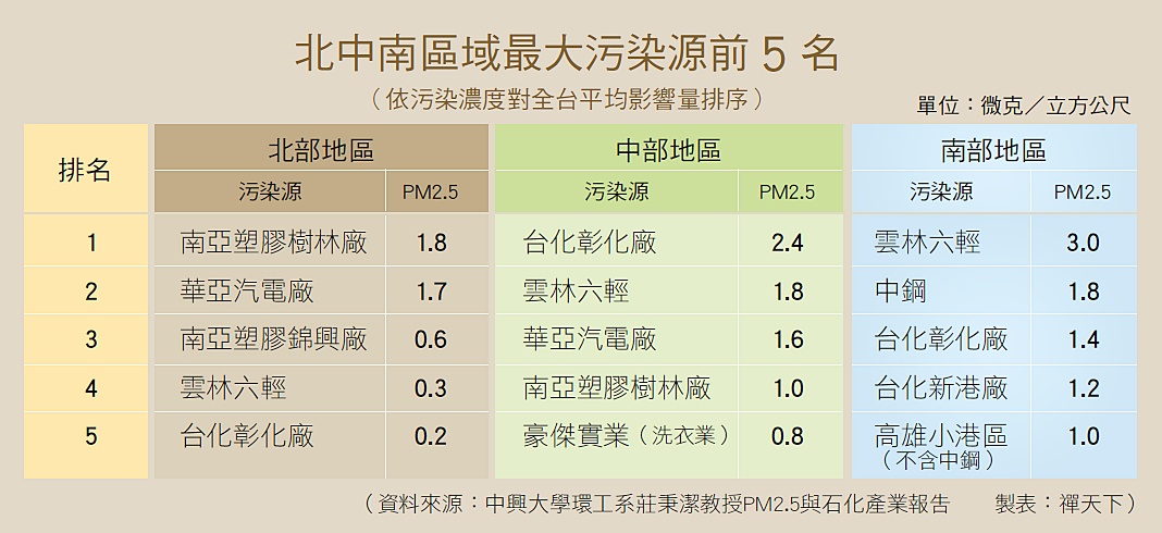 北中南區域最大污染源前5名