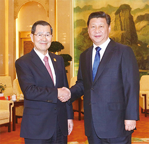 習近平對著前副總統蕭萬長說,兩岸政治不能一代一代地拖下去。(圖片來源:中央社記者吳翊寧攝)