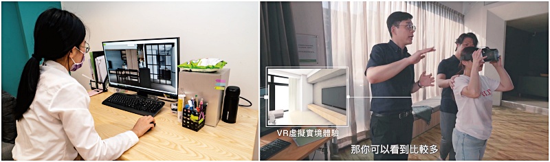 家具規劃師會先在電腦上畫出3D設計圖(左圖),屋主可以透過VR設備(右圖),360度環景事先預覽整個居家空間的配置。(右圖來源:www.youtube.com/watch?v=ORo1iodUlsE&t=63s)