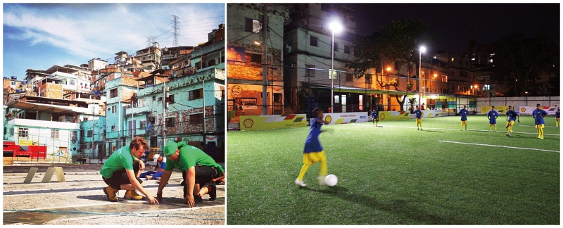 「踩踩電地磚」的足球場,位於巴西里 約熱內盧貧民窟