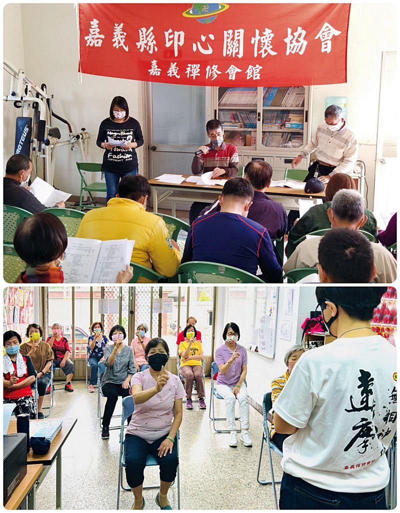 創辦印心關懷協會,在溪口鄉大力推廣體驗禪時,正好中正大學領袖社的學生也下鄉服務,嘉義禪修會館就和領袖社學生合作,上半場由禪修會館的師資教導禪坐及達摩無相神功,下半場由大學生教導禪繞畫,也會播放悟覺妙天師父的開示。參與的有緣人都非常喜歡這樣的課程安排,因為一方面能夠運動,放鬆身心,同時幫助氣脈暢通,另一方面又能培養專注力,還可以提升心靈層次。