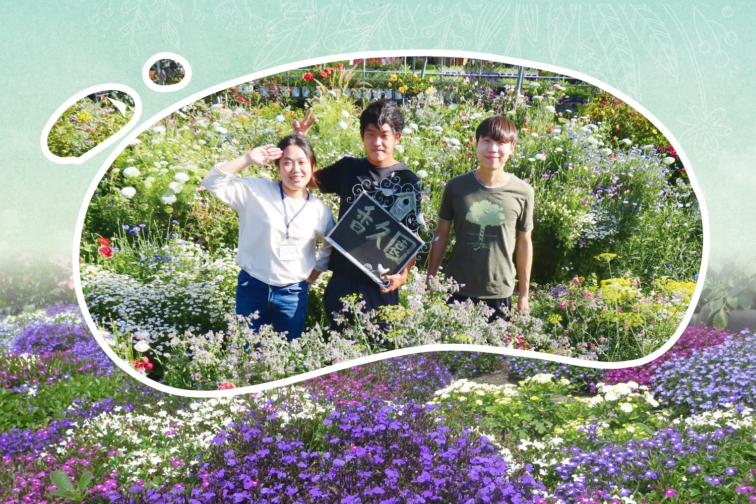 YouTube頻道「伊恩愛種花」的製作團隊,曾連續兩年都到香久園採訪拍攝,從畫面中可以看到,光是一個類似小島布局的區域,就種植了千年菊、三色吉利花、法國菊、愛蜜西、蝴蝶陸蓮花、巧克力波斯菊、非洲櫻草、白玉草和阿米芹等不同花種,高高低低的花卉自然交錯,走入花叢中,時不時都會冒出驚喜,單憑想像都能聽見遊客的讚歎聲不絕於耳──「哇」、「這是什麼花」、「好美喔」!