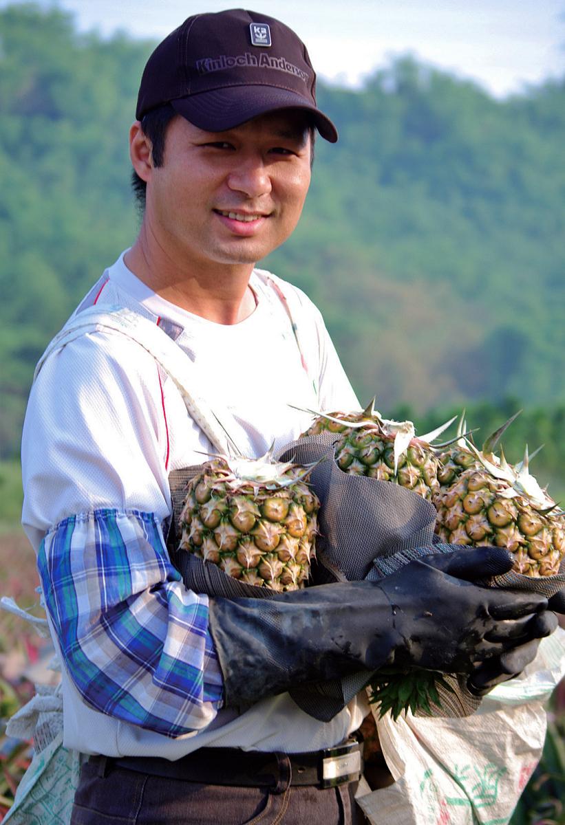 「氮肥不能給太多,會造成含水量高,容易壞掉,必須減少肥料比例,朝有機方向努力,現在合作社的鳳梨園都採施有機肥,容易控制品質」,他更強調,外銷首重產品安全,尤其日本檢疫非常嚴格,絕不可有農藥殘留,其次是品質。目前他與果農契作100多公頃鳳梨田,為維持品質管理,都有專門人員到田間輔導施肥及噴藥,務必要求每顆鳳梨品質整齊度。
