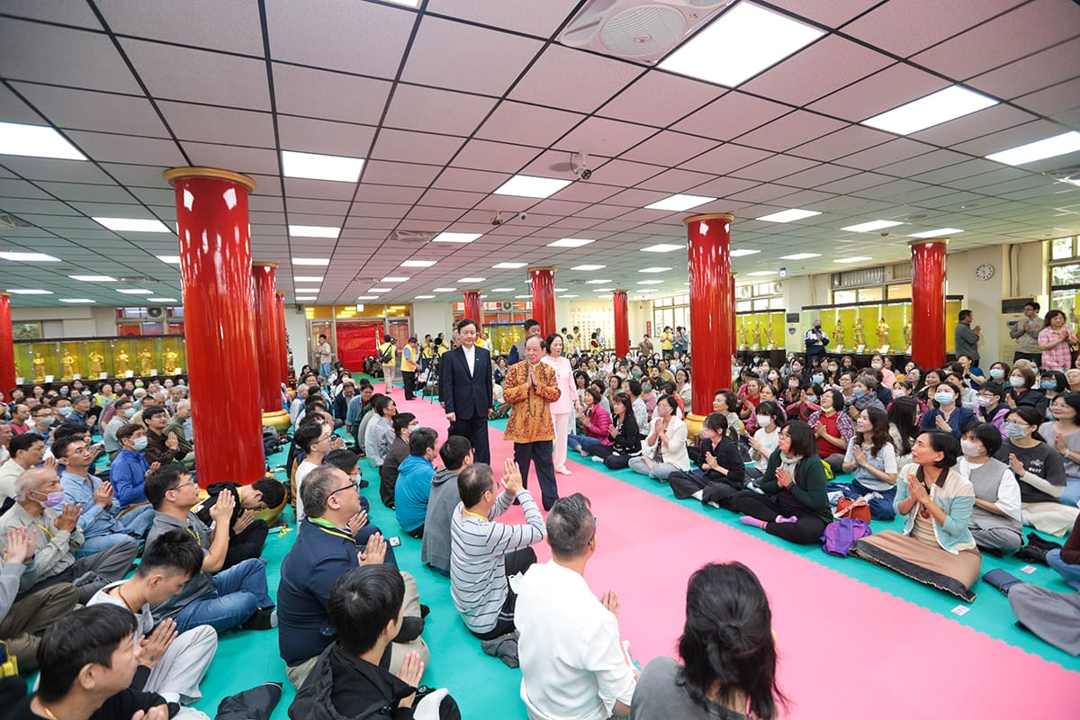 當天節氣雖已立冬,關西卻陽光和煦,清風送爽,猶如春天。禪師於10點抵達禪寺後,隨即為七星陣燈、壽桃、壽麵,以及明年的馬年錢母加持祝福。供燈極為踴躍,全部加持後,禪師略事小憩,法會於11點正式開始。首先由釋迦牟尼佛救世基金會總教授師覺妙宗明恭讀疏文,祈求國泰民安,世界和平。
