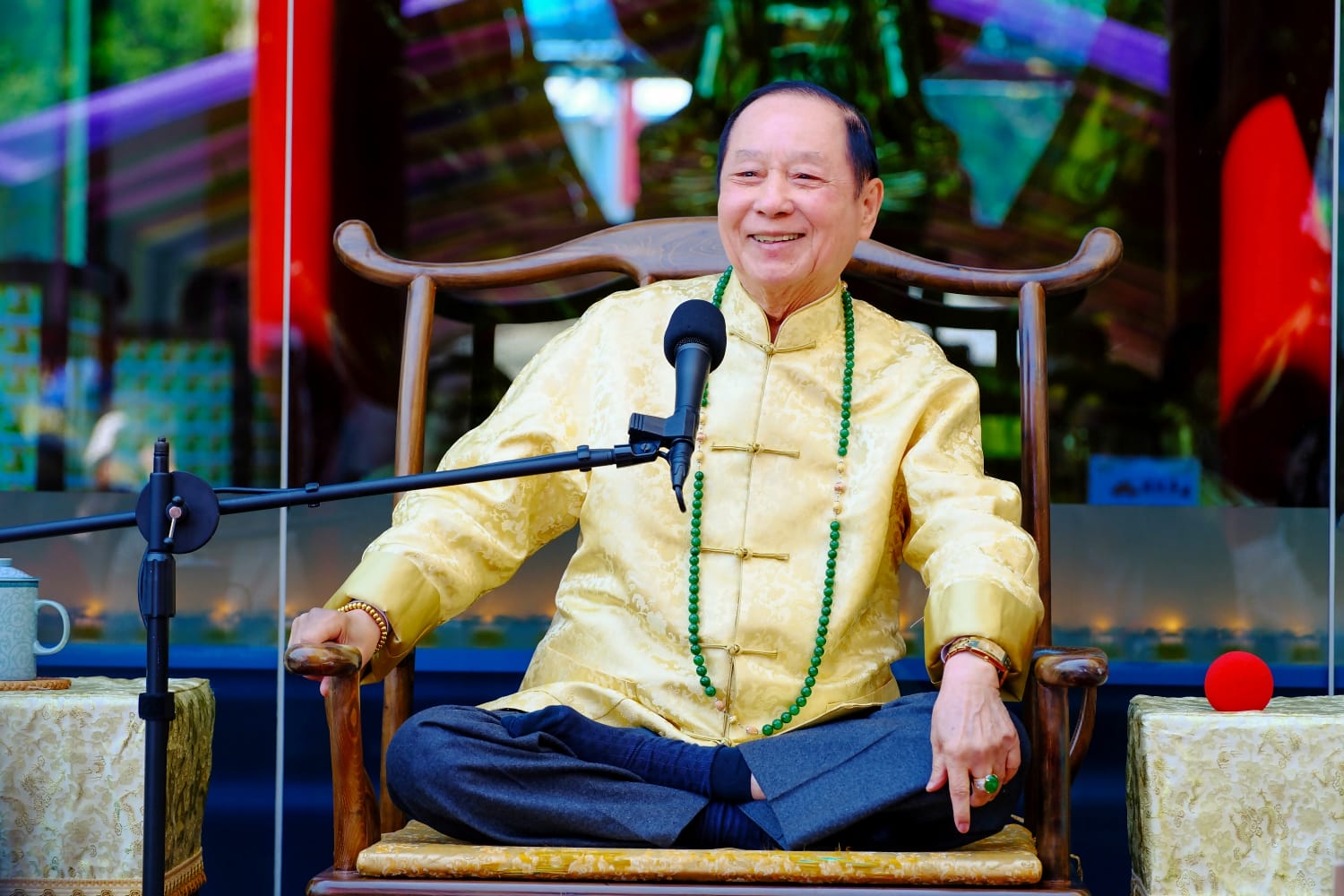 最後,張嘉哲也與在場信眾拜年,並期許世界和平早日到來。祭天大典在11點半左右圓滿完成,大梵寺準備了素油飯,以及禪師加持過的生麵線作為伴手禮,隨後眾人或前往禪寺二樓的禪修會館禪定,或在大梵寺點燈求籤,為丙午馬年做好奔馳的準備。