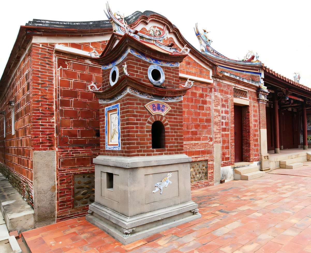 進入書院前,在前埕右側有一座字紙亭。王坤煉表示,從這座字紙亭可一窺文化傳承的精神──字紙亭是古代文人表達對字紙珍惜崇敬的焚燒專用火爐,並採用商周以降的金文變字體題寫「字紙亭」三字,與兩千多年來的漢文化遙相呼應。