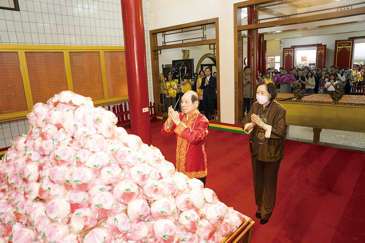 整場法會在11點左右圓滿結束,慈航觀音禪寺準備了平安麵與壽桃與眾人分享,每個人都沐浴在佛光中,誓願學習觀世音菩薩大慈大悲的精神,將愛的力量傳出去。