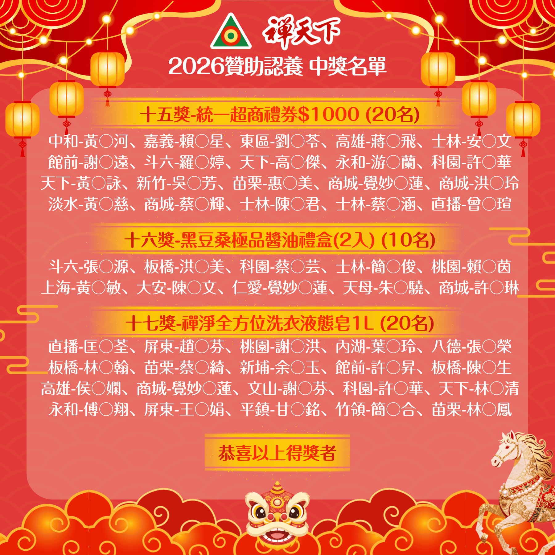 得獎商品將於 3 月中陸續聯繫得獎人,